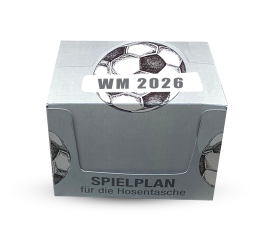 Werben Sie effizient und originell mit Pocketplaner.de zur Fussball-WM 2026 (gerne auch im Dispenser). Unser übersichtlicher Spielplan präsentiert alle Spiele ganze 5 Wochen am Stück – klein und praktisch. Aufmerksamkeit ist garantiert!