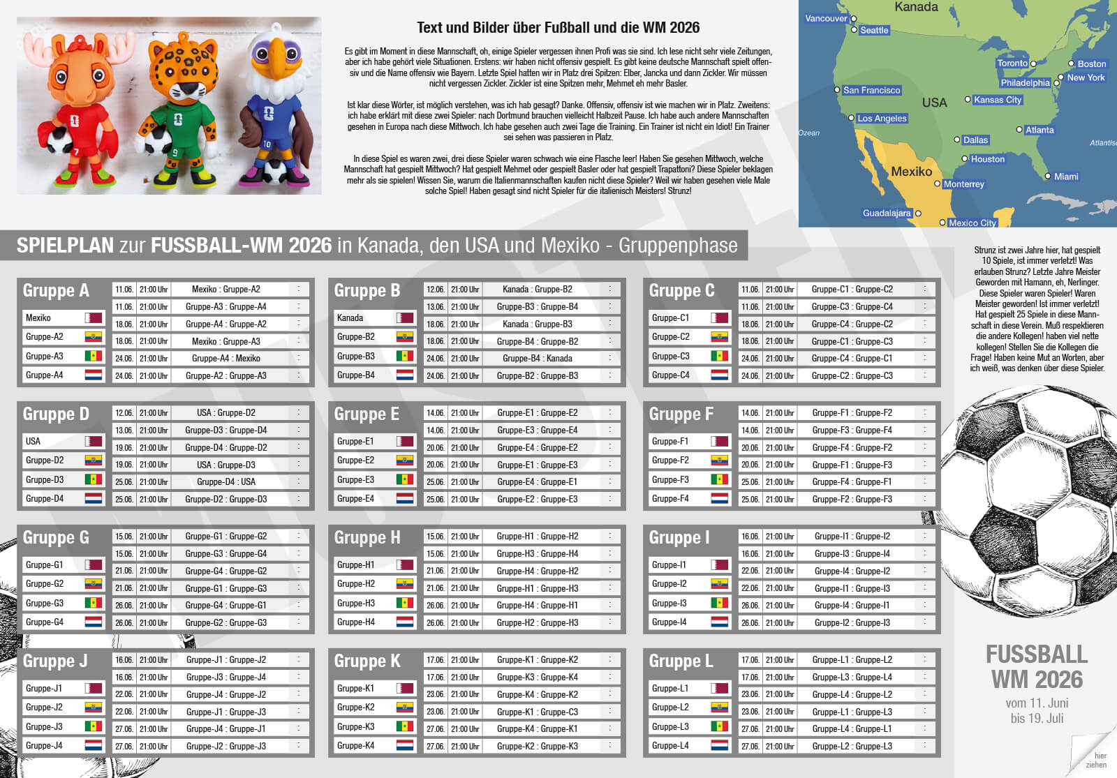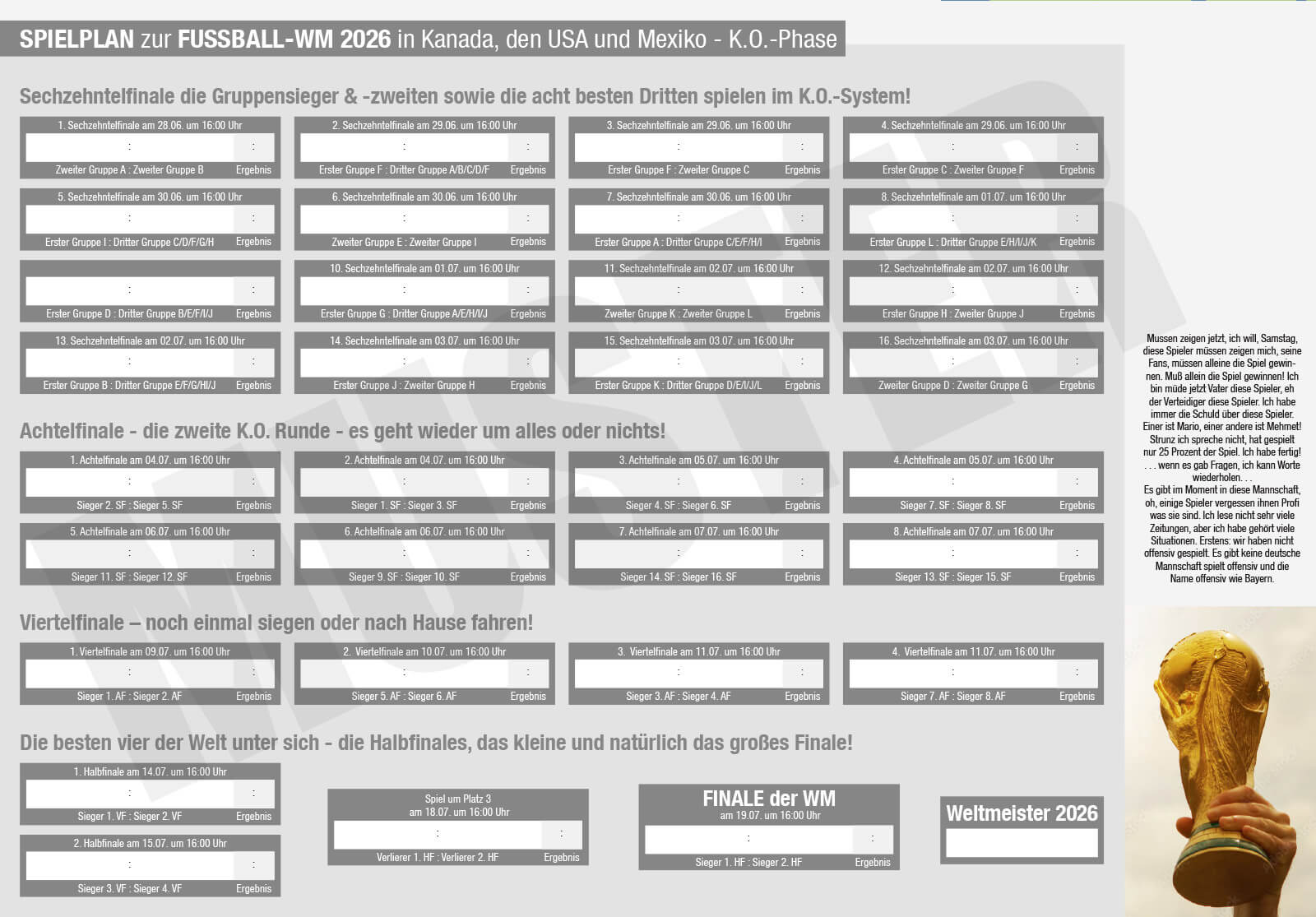 - WM Spielplan 2026 mit ausfaltbarem Innenblatt, mit oder ohne